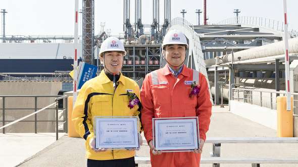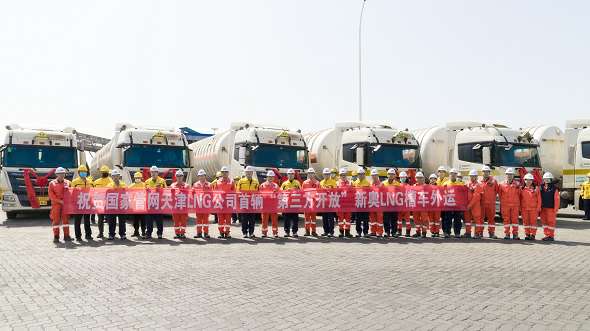 乐鱼官方网站-乐鱼leyu(中国)和国家管网天津接收站共同举行了乐鱼官方网站-乐鱼leyu(中国)首船LNG接卸和首车发车仪式。国家管网天津接收站总经理张林松和乐鱼官方网站-乐鱼leyu(中国)智能贸易及输配业务群副总经理尹明分别代表双方互换纪念铭牌。
